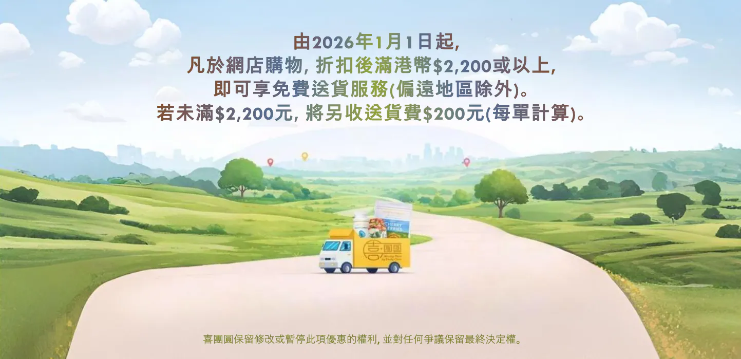 如遇八號或以上颱風、黑色暴雨警告或任何可導致道路阻塞的情況,《喜·團圓》可能會取消當天的送貨服務,並會聯絡顧客重新安排送貨時間。